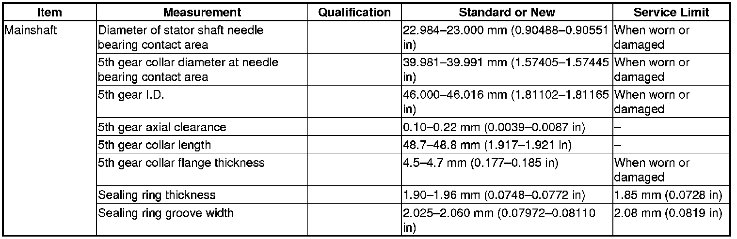 Mainshaft Specification(s)