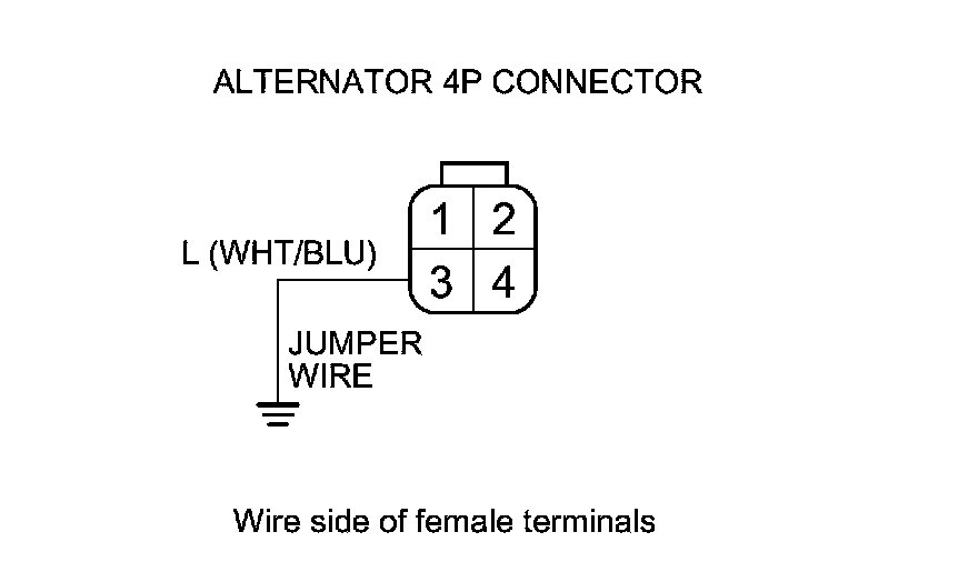 17. Connect alternator 4P connector terminal No. 3 to body ground with a jumper wire.