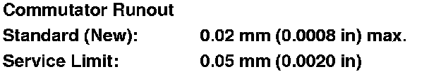 - If the commutator runout is within the service limit, check the commutator for carbon dust or brass chips between the segments.