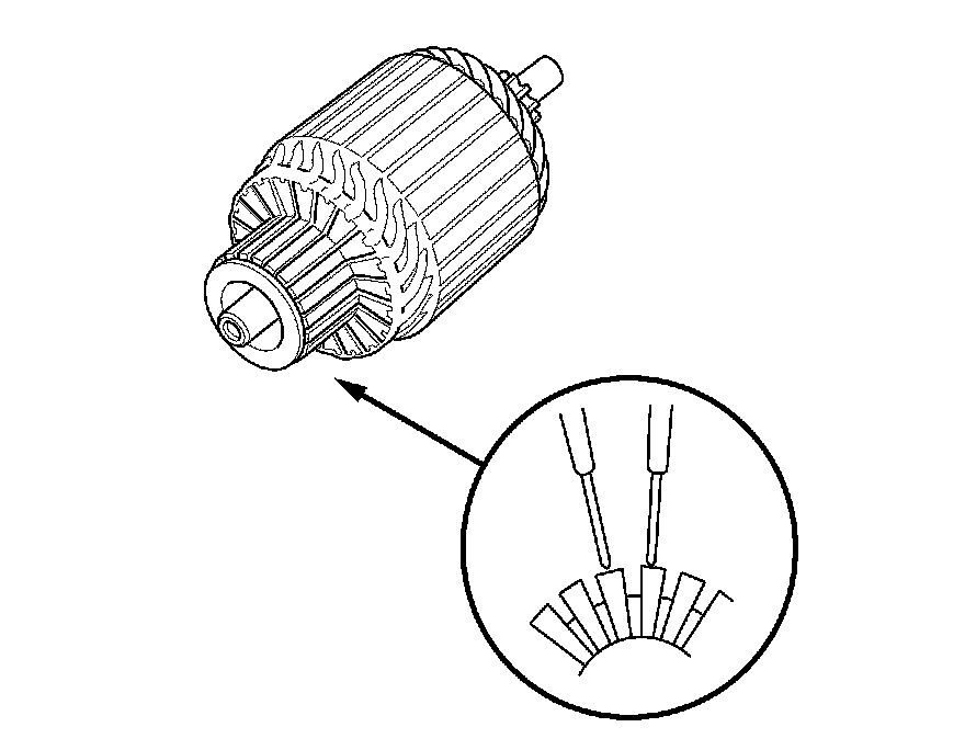 11. Use an ohmmeter to check for continuity between the segments of the commutator. If there is an open circuit between any segments, replace the armature.