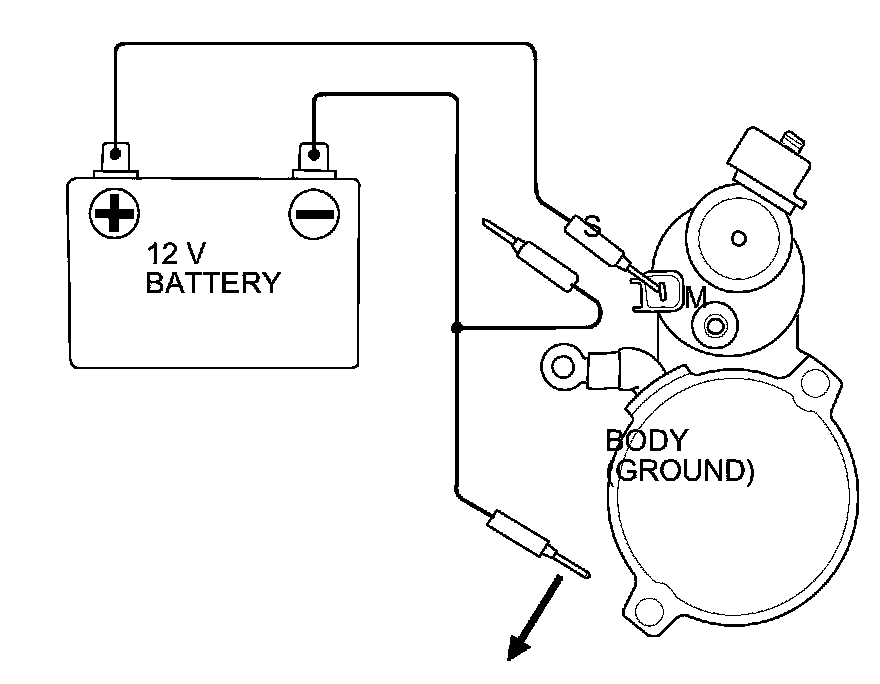 6. Disconnect the battery from the M terminal. If the pinion does not retract, the hold-in coil of the solenoid is working properly.
