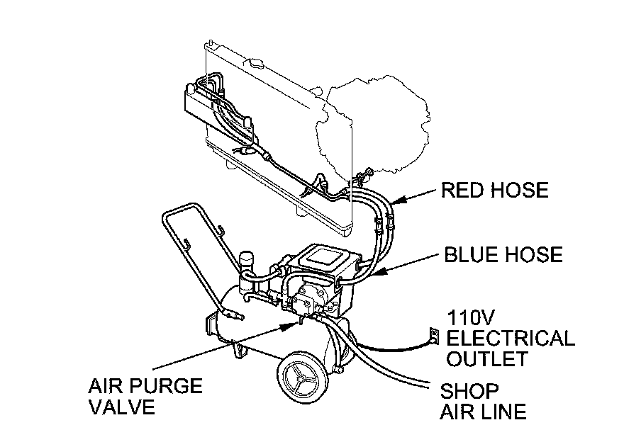 7. Connect a shop air hose (regulated to 100 to 125 psi) to the air purge valve.