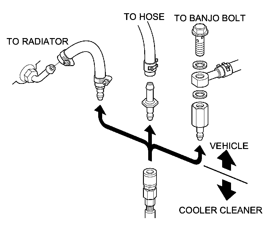 4. Select the appropriate pair of fittings, and attach them to the radiator, to the hoses, or to the banjo bolts for flow through the ATF cooler cleaner.