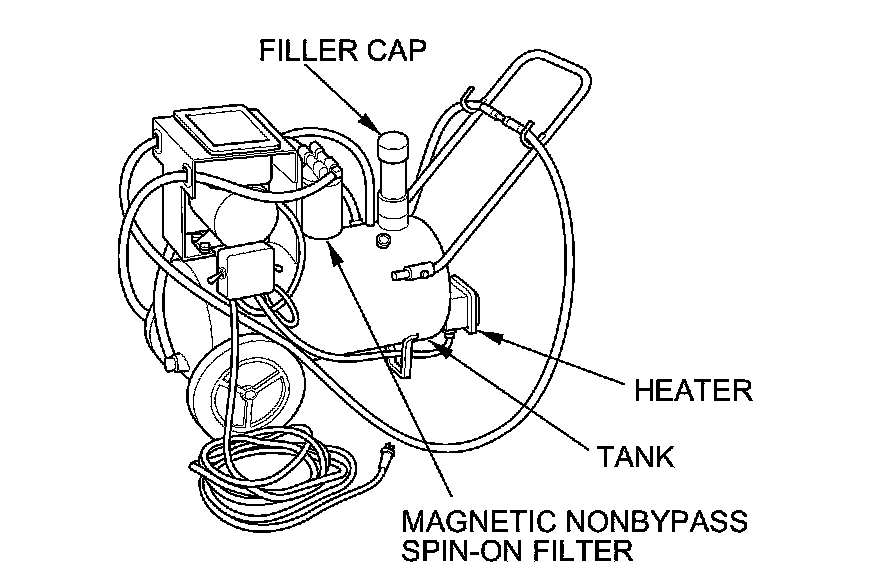 NOTE: If the red indicator above the HEAT toggle switch comes on, the fluid level in the tank is too low for the tank heater to work (see step 1 of this procedure).