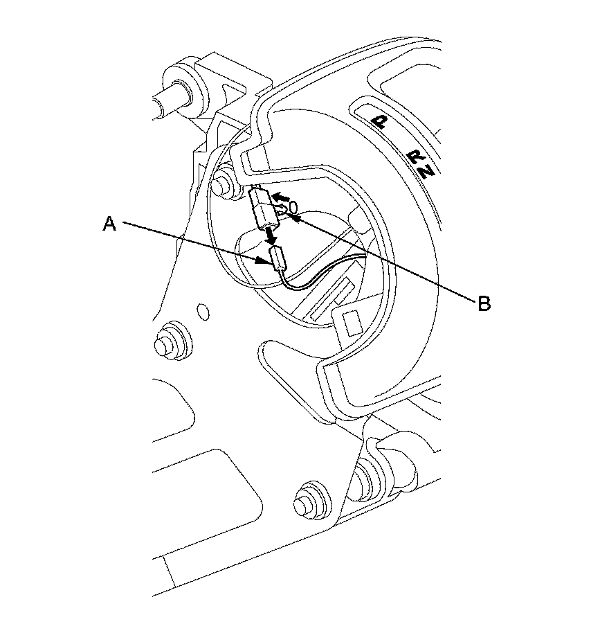 11. Install the A/T gear position indicator panel (A), and install the A/T gear position indicator panel light socket (B) in the A/T gear position indicator panel.