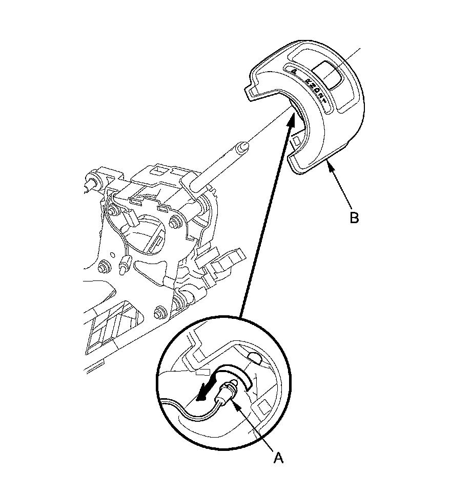 4. Remove the A/T gear position indicator panel light socket (A) from the A/T gear position indicator panel (B), and remove the A/T gear position indicator panel.