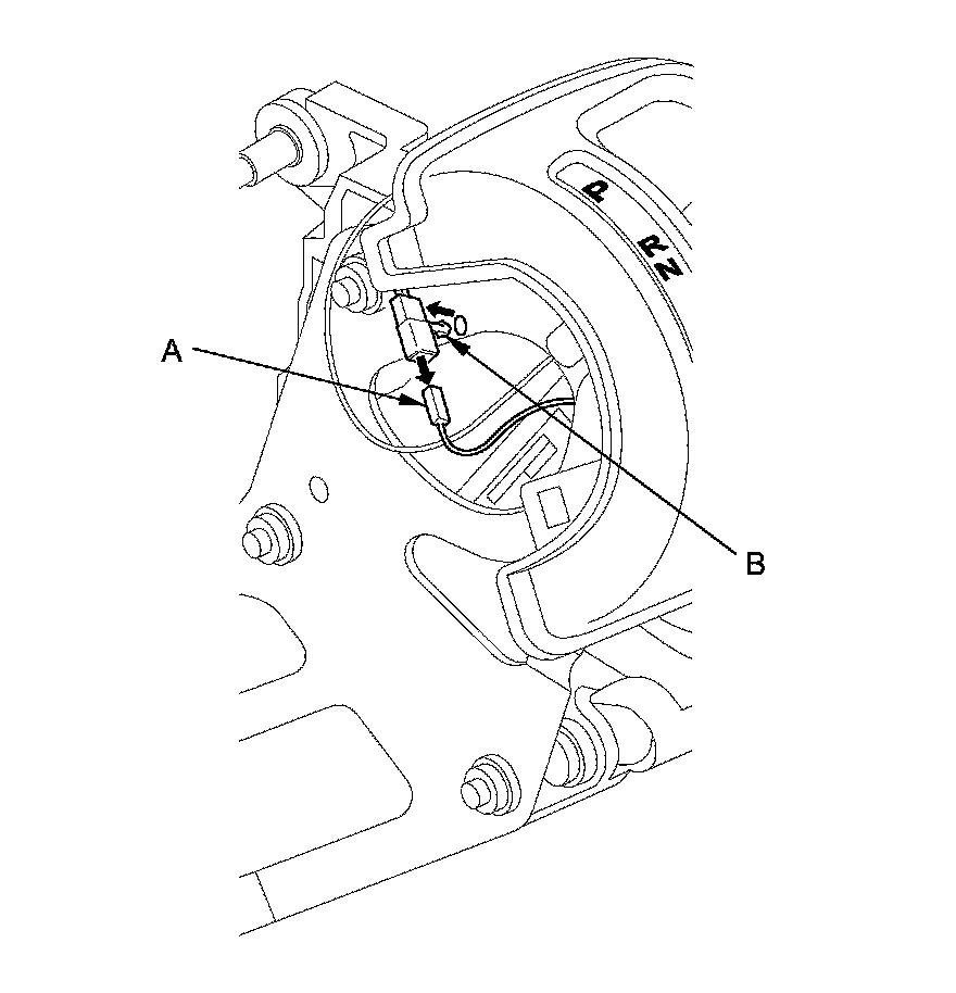 2. Disconnect the D3 switch connector (A), and remove the connector clip (B) from the mounting bracket.