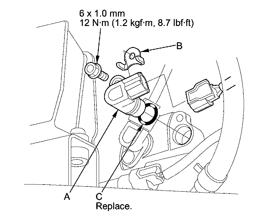 5. Install a new O-ring (C) on a new output shaft (countershaft) speed sensor, then install the output shaft (countershaft) speed sensor and the sensor washer.