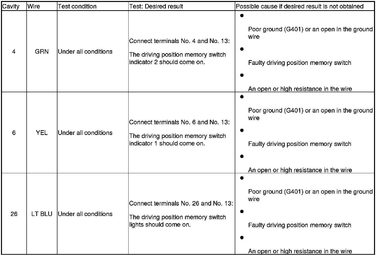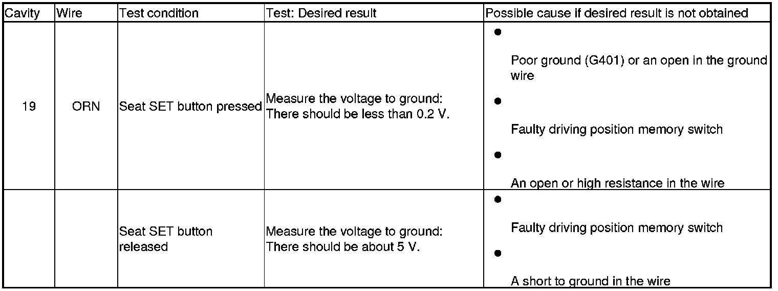 Driving Position Memory System (Power Window Master Switch) Input Test