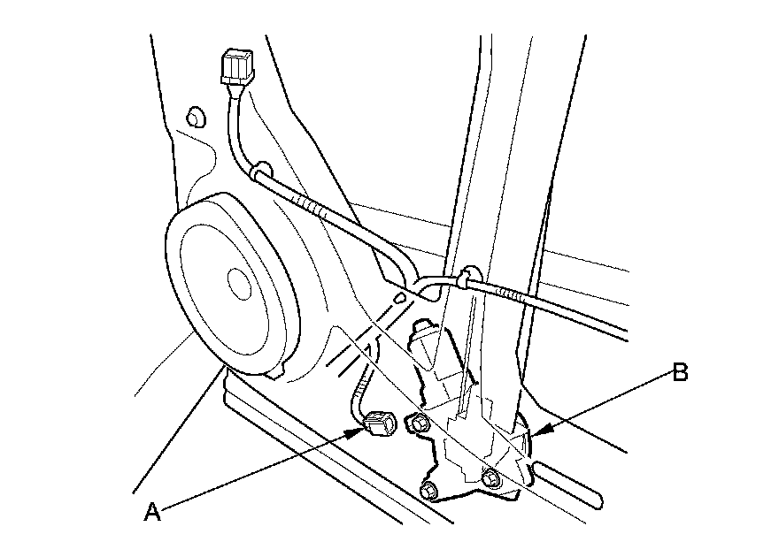 4. Disconnect the 2P connector (A) from the rear power window motor (B).