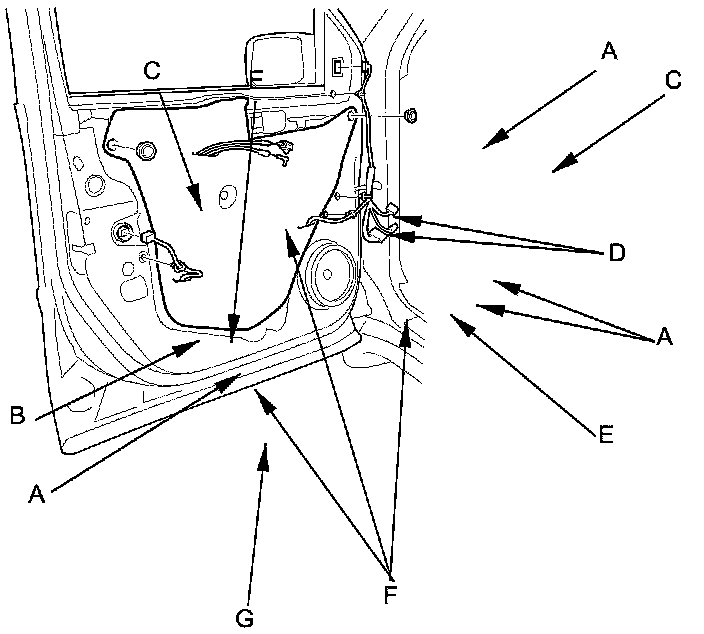 - When reinstalling the door panel, make sure the plastic cover is installed properly and sealed around its outside perimeter to seal out water.