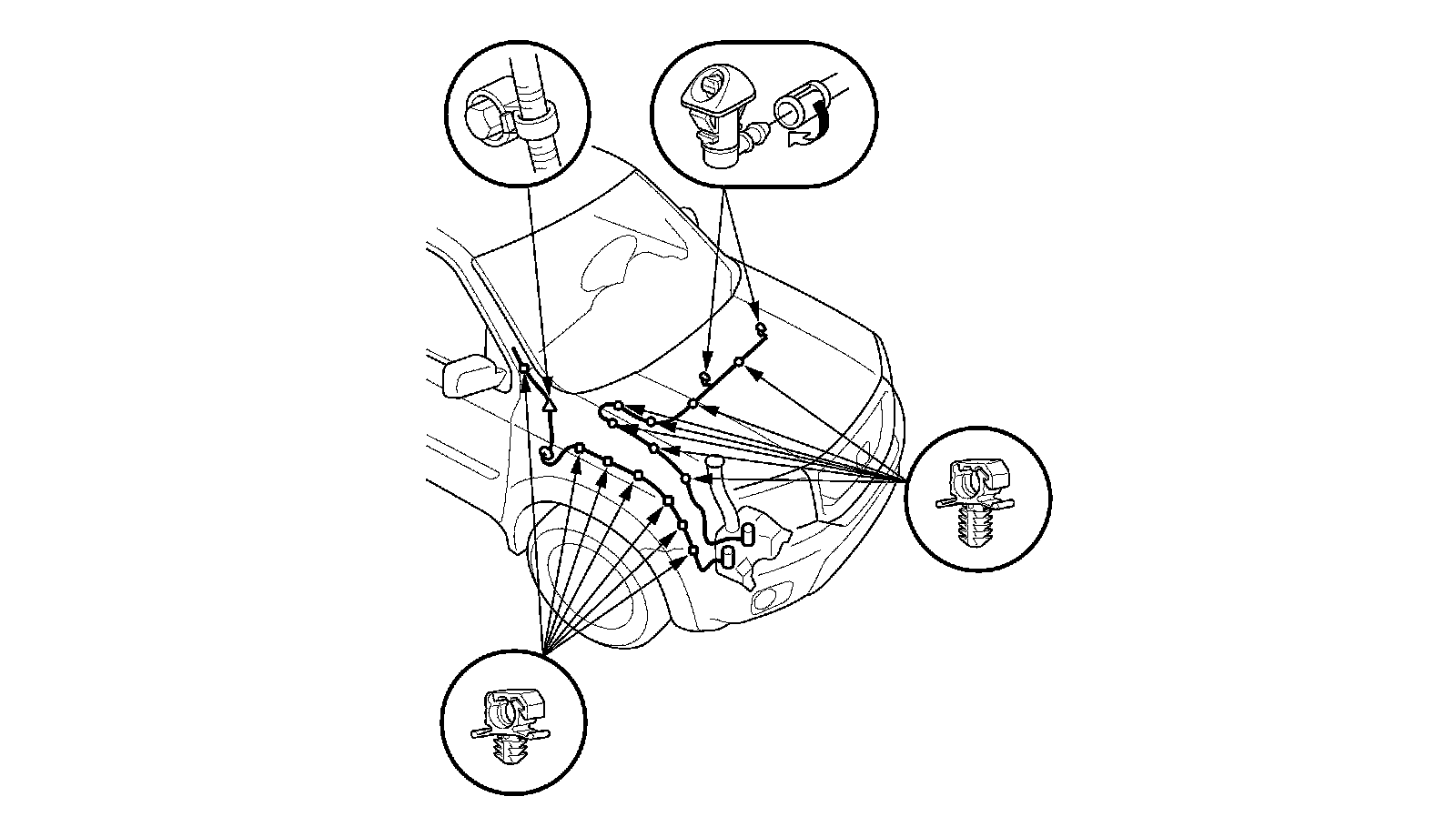 Remove the washer nozzles and clips, then remove the washer tubes.