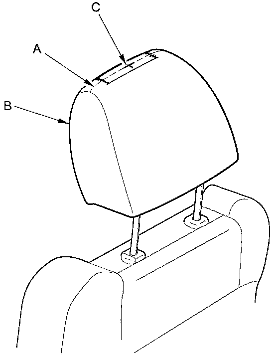 4. Make a mark on the middle point of the top seam (A) in the head restraint (B) as a datum point (C).