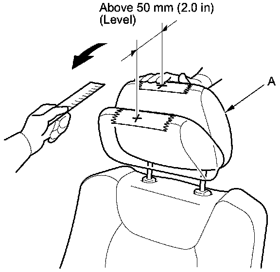 5. Push the head restraint (A) forward, and measure the horizontal head restraint movement. The head restraint should move more than 50 mm (2.0 in) without resistance.