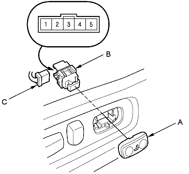 2. Separate the lumbar support switch cover (A) from the switch (B).