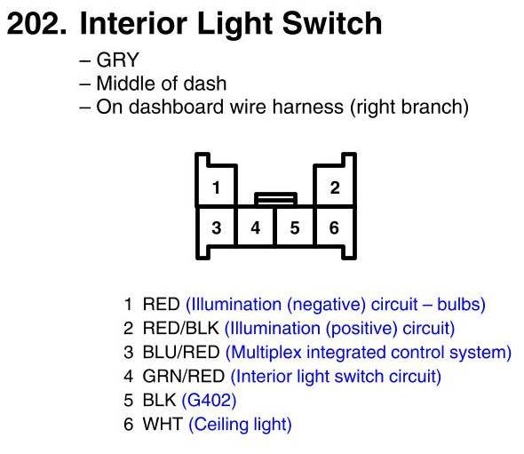 View 202 - Interior Light Switch Connector View