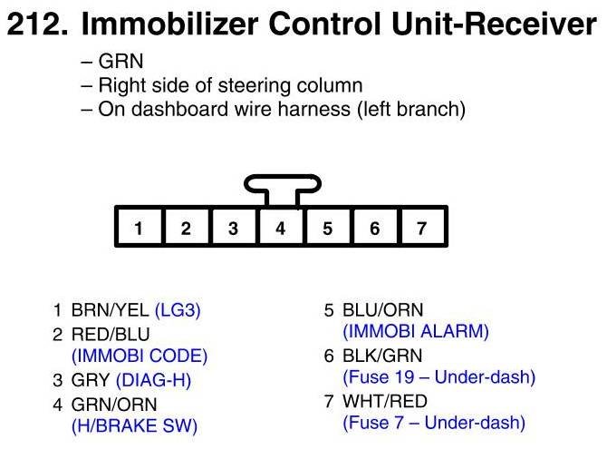 View 212 - Immobilizer Control Unit-Receiver Connector View