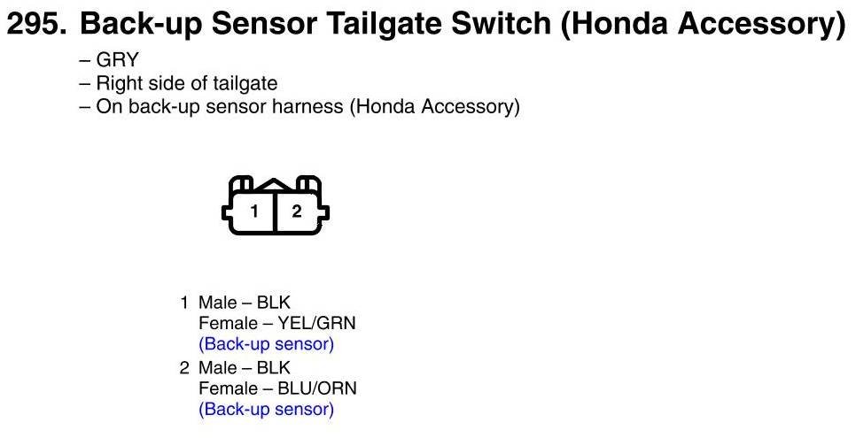 View 295 - Back-Up Sensor Tailgate Switch Connector View (Honda Accessory)