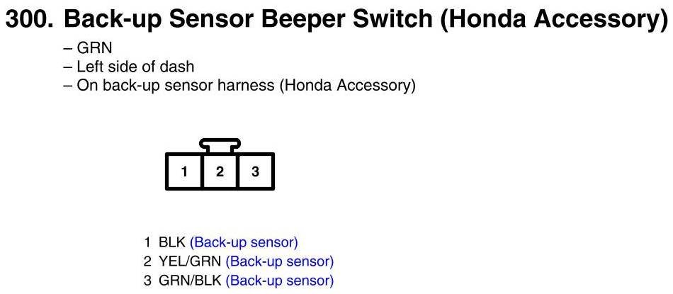 View 300 - Back-Up Sensor Beeper Switch Connector View (Honda Accessory)