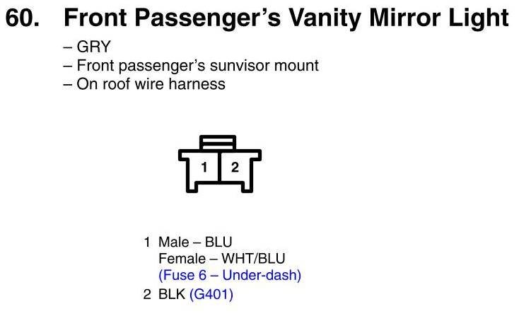 View 60 - Front Passenger's Vanity Mirror Light Connector View