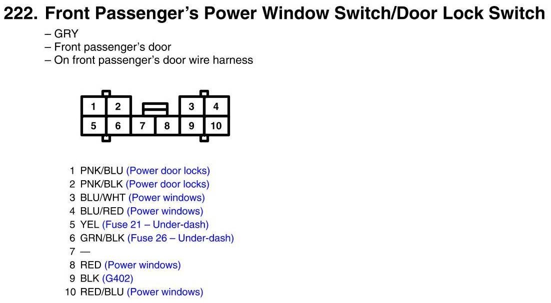 Front Passenger's Power Window Switch/Door Lock Switch Connector View