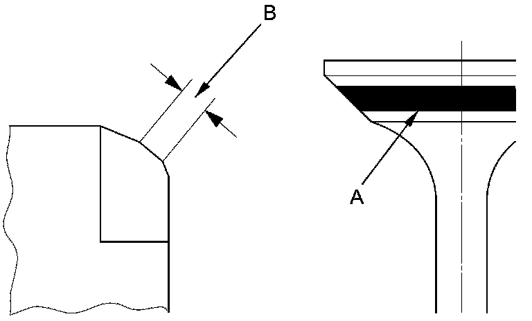 7. The actual valve seating surface (B), as shown by the blue compound, should be centered on the seat.