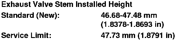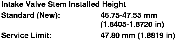 9. If the valve stem installed height is over the service limit, replace the valve and recheck. If it is still over the service limit, replace the cylinder head; the valve seat in the head is too deep.