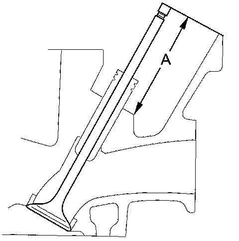 8. Insert the intake and exhaust valves in the head, and measure the valve stem installed height (A).