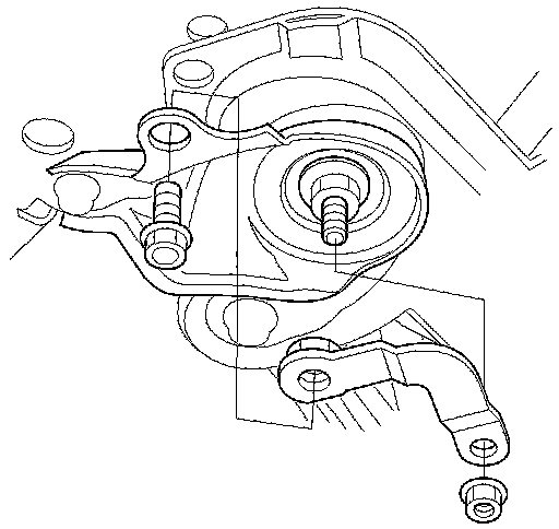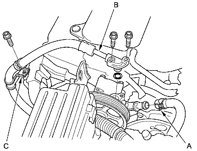 23. Remove the power steering hose bracket (C) from the rear cylinder head cover.
