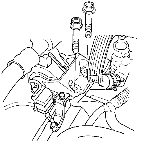 44. Remove the A/C compressor without disconnecting the A/C hoses. Do not bend the A/C hoses excessively.