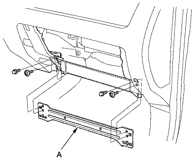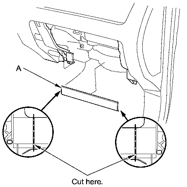 3. Cut the plastic cross brace (A) in the glove box opening with diagonal cutters in the area shown, and discard it.