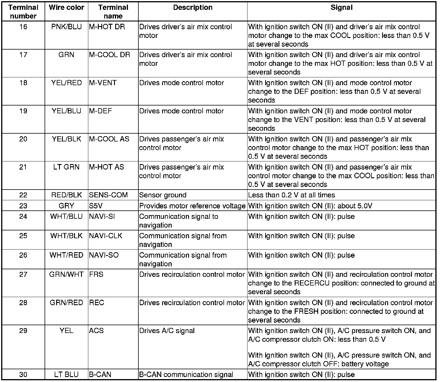 Climate Control Unit Inputs and Outputs