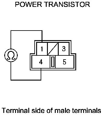 2. Measure the resistance between terminals No. 1 and No. 4 of the power transistor. It should be about 1.5 kOhms.