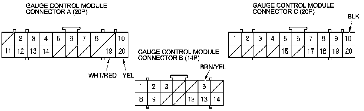 6. Reconnect connectors A and C to the gauge control module, and do the following input tests: