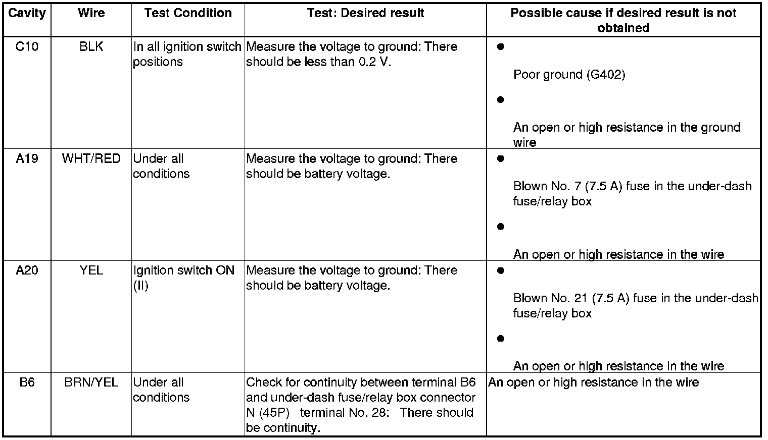 NOTE: Check the No. 22 (120 A), No. 23 (60 A), No. 15 (40 A) fuse in the under-hood fuse/relay box before troubleshooting.