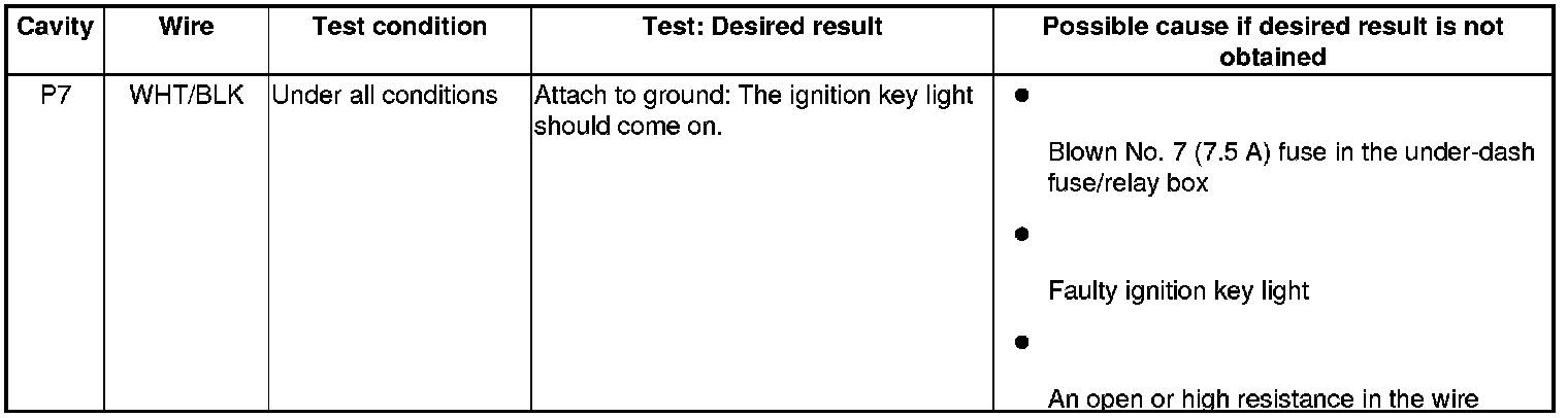 6. Reconnect the connectors to the under-dash fuse/relay box. Turn the ignition switch to ON (II) and do the following input tests: