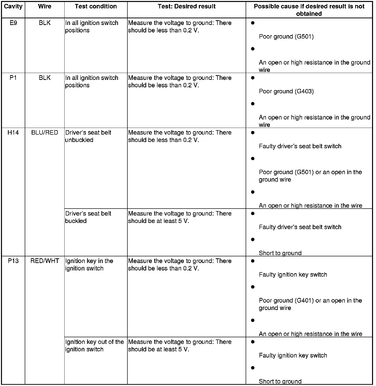 - If the beeper sounds and the seat belt reminder light flashes, go to step 13.