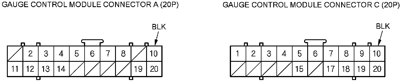 9. Disconnect gauge control module connectors A (20P) and C (20P).