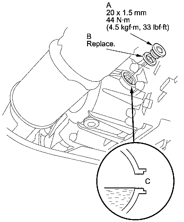 7. Install the filler plug and a new sealing washer.