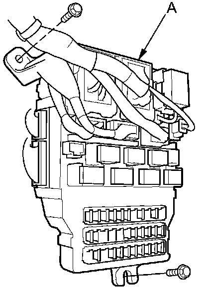 3. Disconnect the connectors from the fuse side of the under-dash fuse/relay box (A).