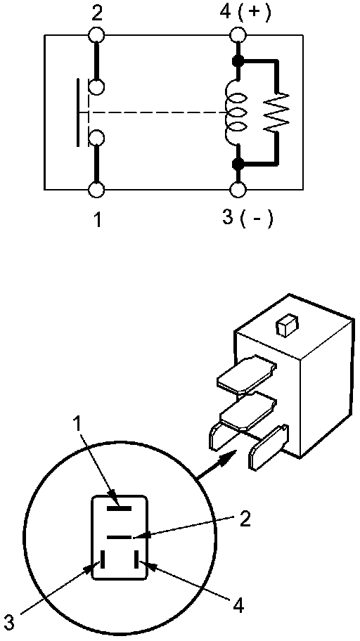 - There should be continuity between terminals No. 1 and No. 2 when power is connected to terminal No. 4 and ground the terminal No. 3.