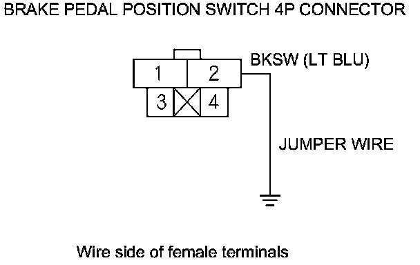 9. Connect brake pedal position switch 4P connector terminal No. 2 to body ground with a jumper wire.
