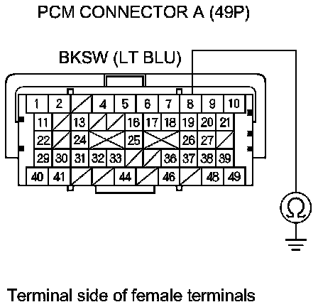 8. Check for continuity between PCM connector terminal A8 and body ground.
