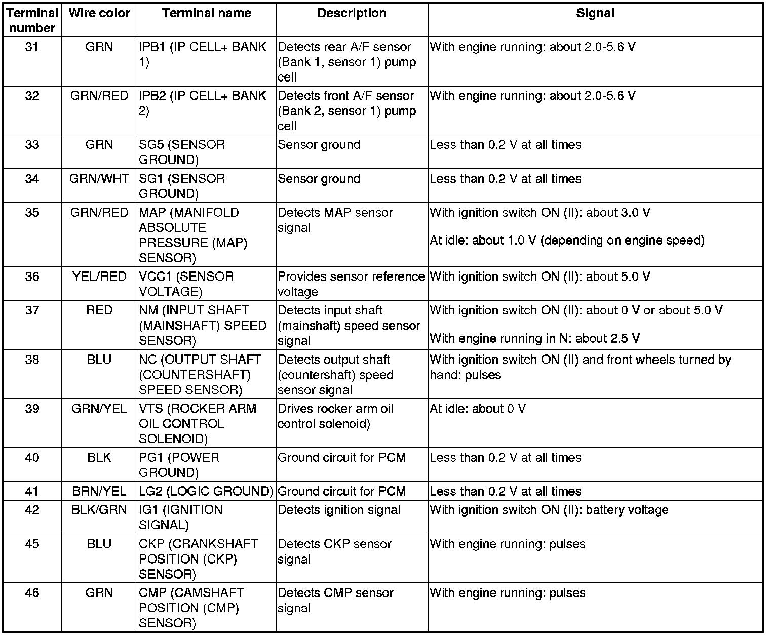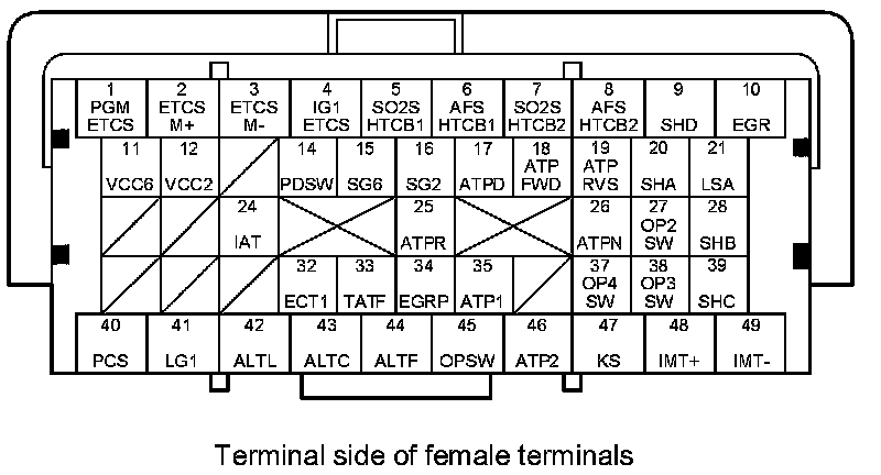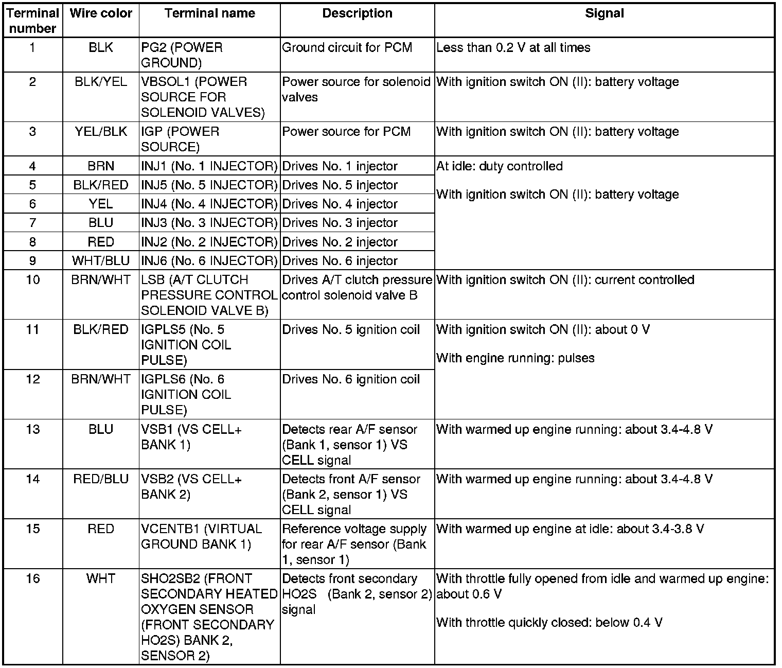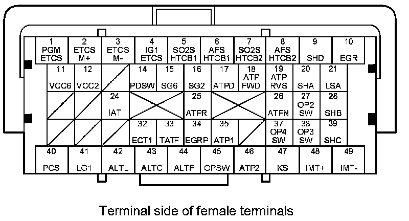 PCM Inputs and Outputs at PCM Connector A (square) (49P)