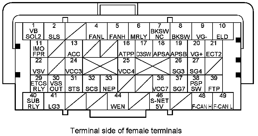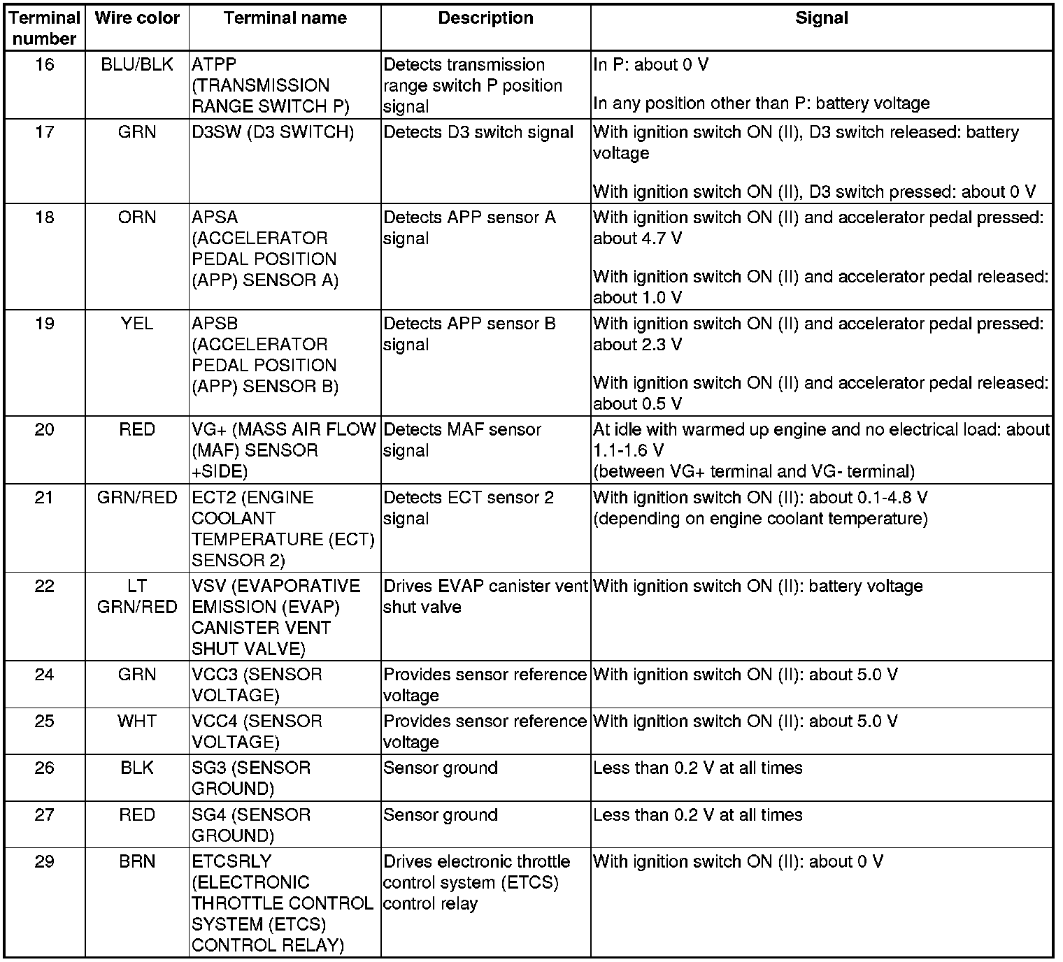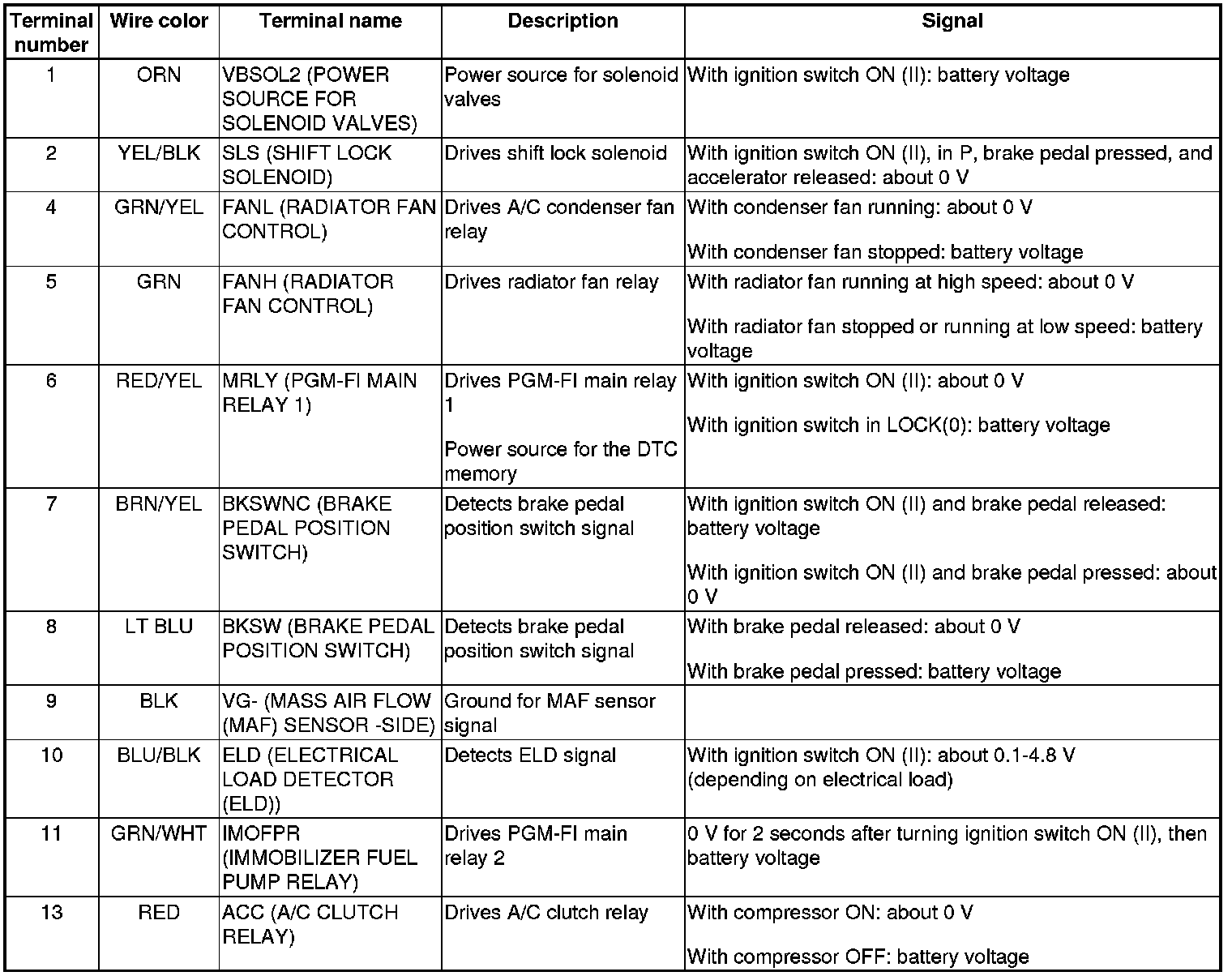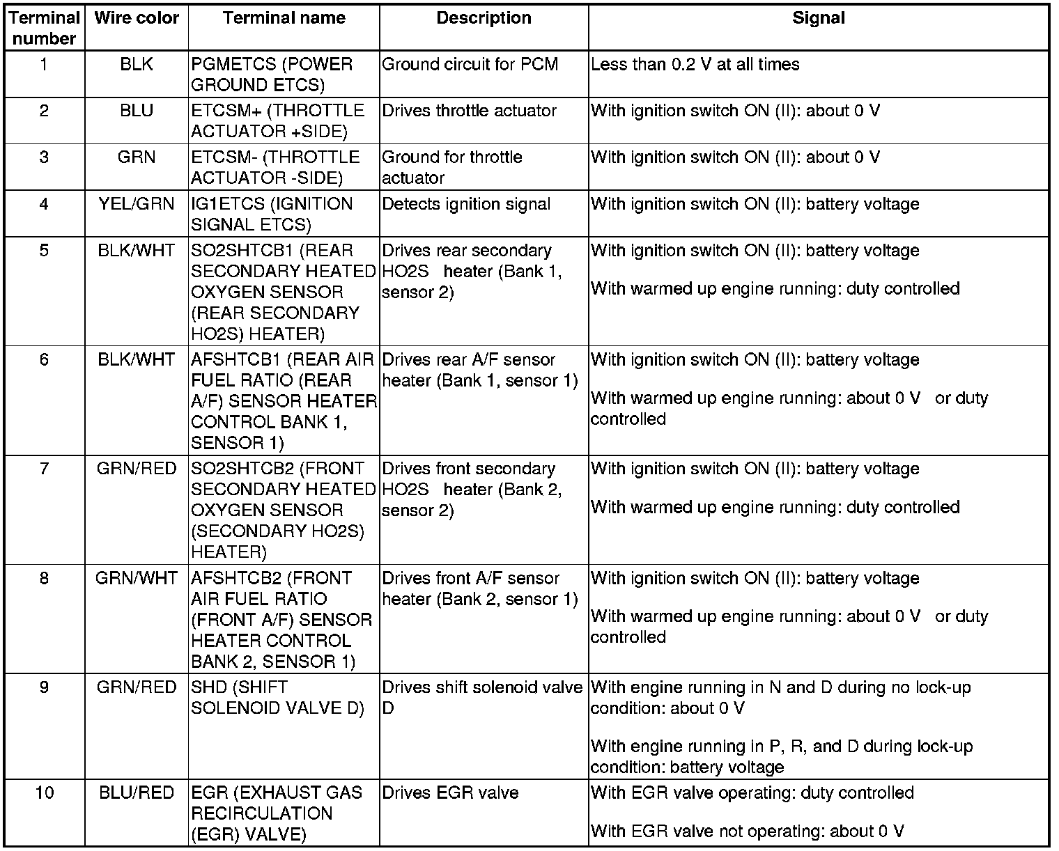 PCM Inputs and Outputs at PCM Connector A (square) (49P)