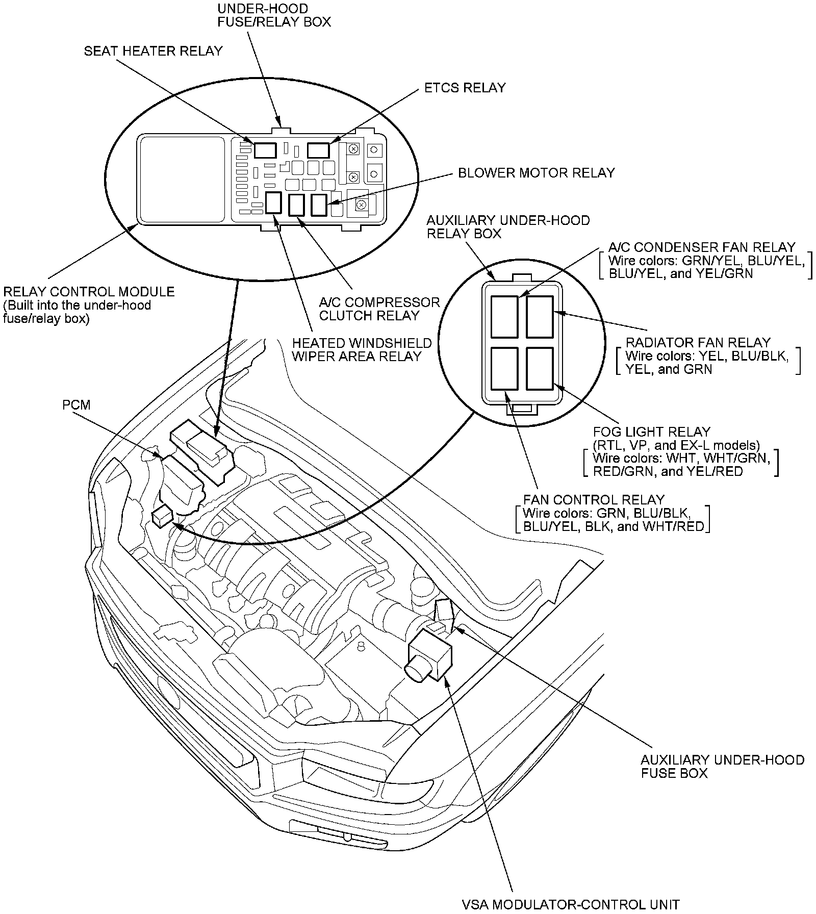 Relay and Control Unit Locations - Engine Compartment
