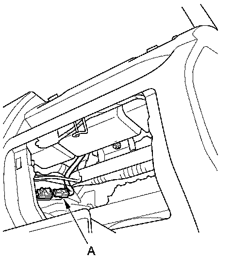 6. Disconnect the front passenger's airbag inflator 4P connector (A) from the dashboard wire harness.