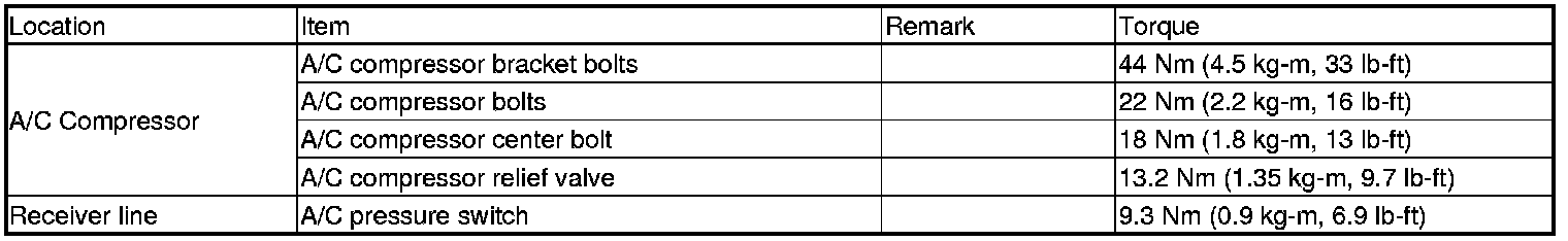 Torque Specifications