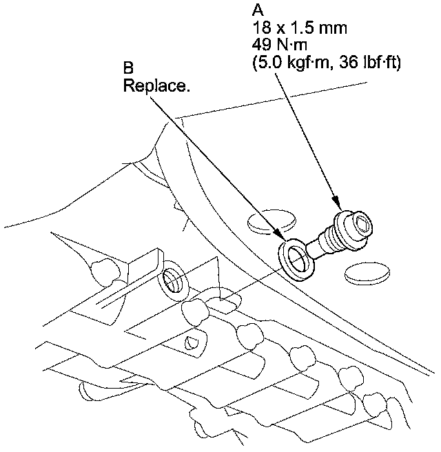 2. Remove the drain plug (A), and drain the automatic transmission fluid (ATF).