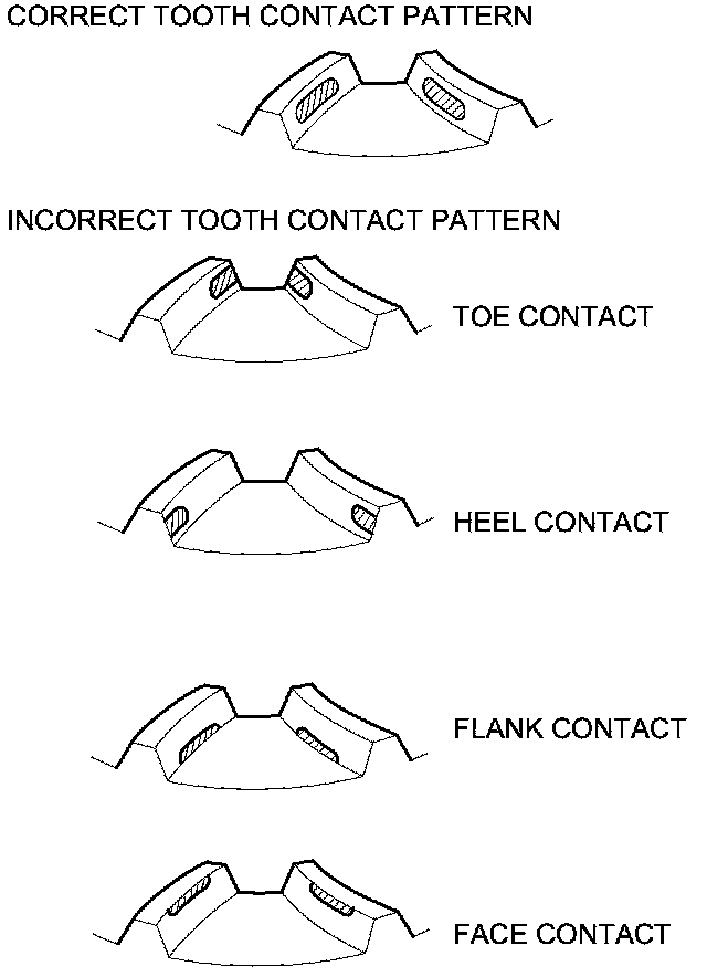20. If the transfer gear tooth contact is incorrect, adjust the transfer gear tooth contact with the 25 mm, 40 mm, or 80 mm thrust shim. Do not use more than two shims of each thrust shim to adjust the tooth contact.